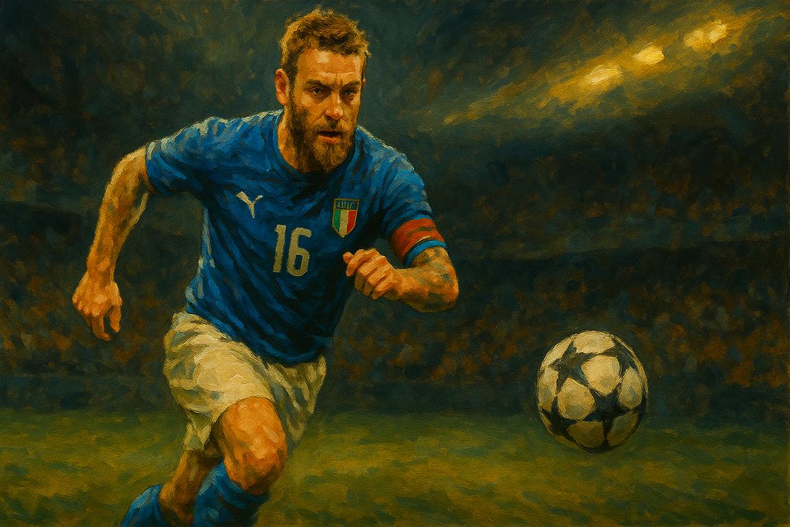 De Rossi è stato un pilastro della Nazionale italiana, contribuendo in modo significativo alla vittoria del Campionato del Mondo 2006. La sua carriera è stata un esempio di leadership silenziosa e di impegno incondizionato, che lo ha reso un idolo indiscusso per la tifoseria e un esempio di romanità autentica. Ha incarnato la combinazione di tecnica e temperamento, bilanciando la sua propensione all’eccessiva foga agonistica con una profonda intelligenza tattica.